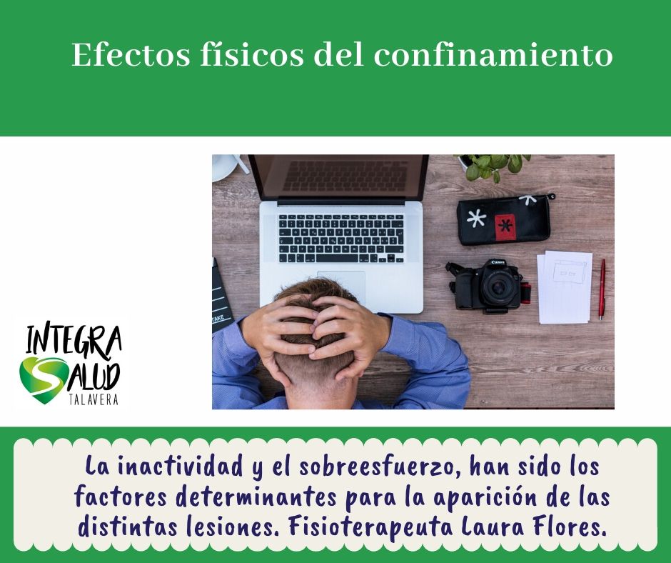 El estado de alarma y el confinamiento nos ha obligado a permanecer en nuestras casas rompiendo todas nuestras rutinas laborales, deportivas, etc. Esto se ha traducido en una serie de consecuencias físicas negativas para nuestro cuerpo que han provocado malestar y dolores en diferentes grados, explica en la fisioterapeuta, Laura Flores.